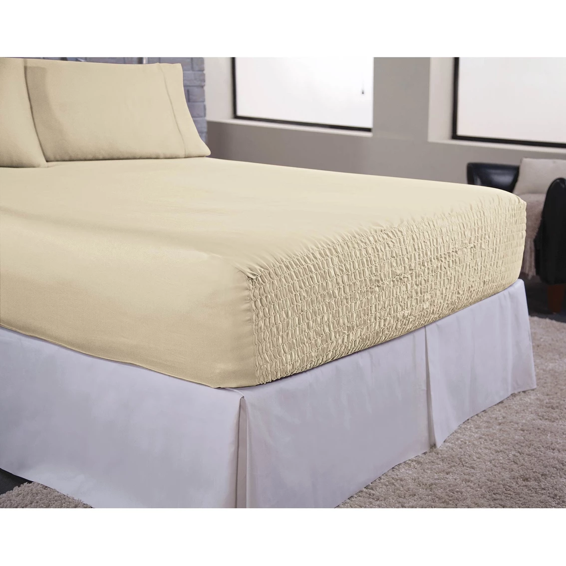 Get comfy and cozy with Bed Tite 300 thread count, cotton soft, comfortable sheet sets. Feature a patented fitted sheet that is guaranteed to fit mattresses from 7-inches to 20-inches thick. Easy to put on and take off mattress. Easy care. Available in a wide range of colors and sizes. 100% cotton. Style: 8440670244.