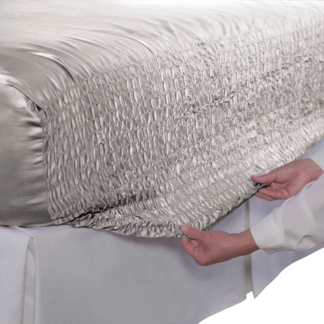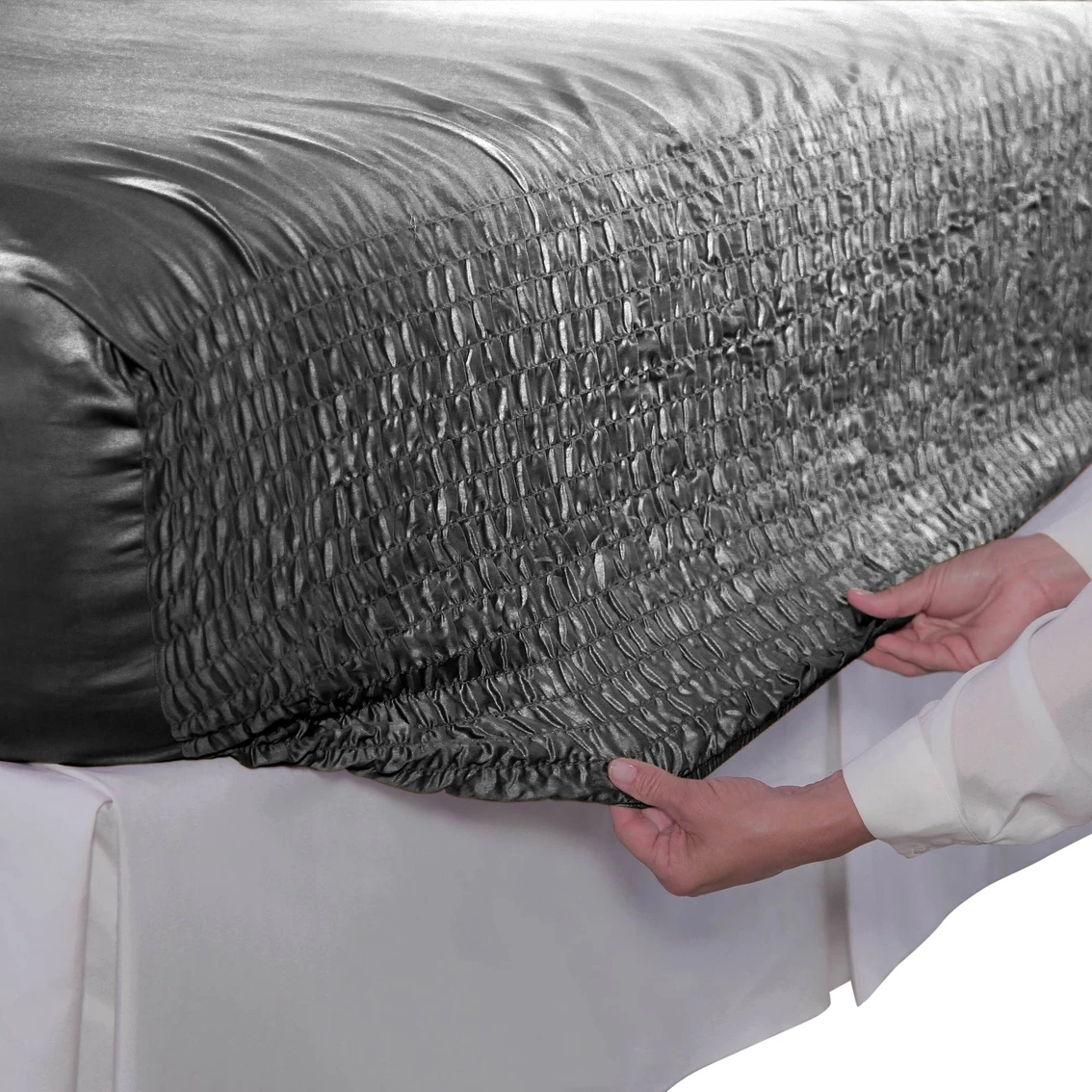 Bed Tite satin polyester soft and comfortable sheet sets have a patented fitted sheet that is guaranteed to fit mattresses from 7-inches to 20-inches thick. Easy to put on and take off the mattress. Easy care. Available in a wide range of colors and sizes.