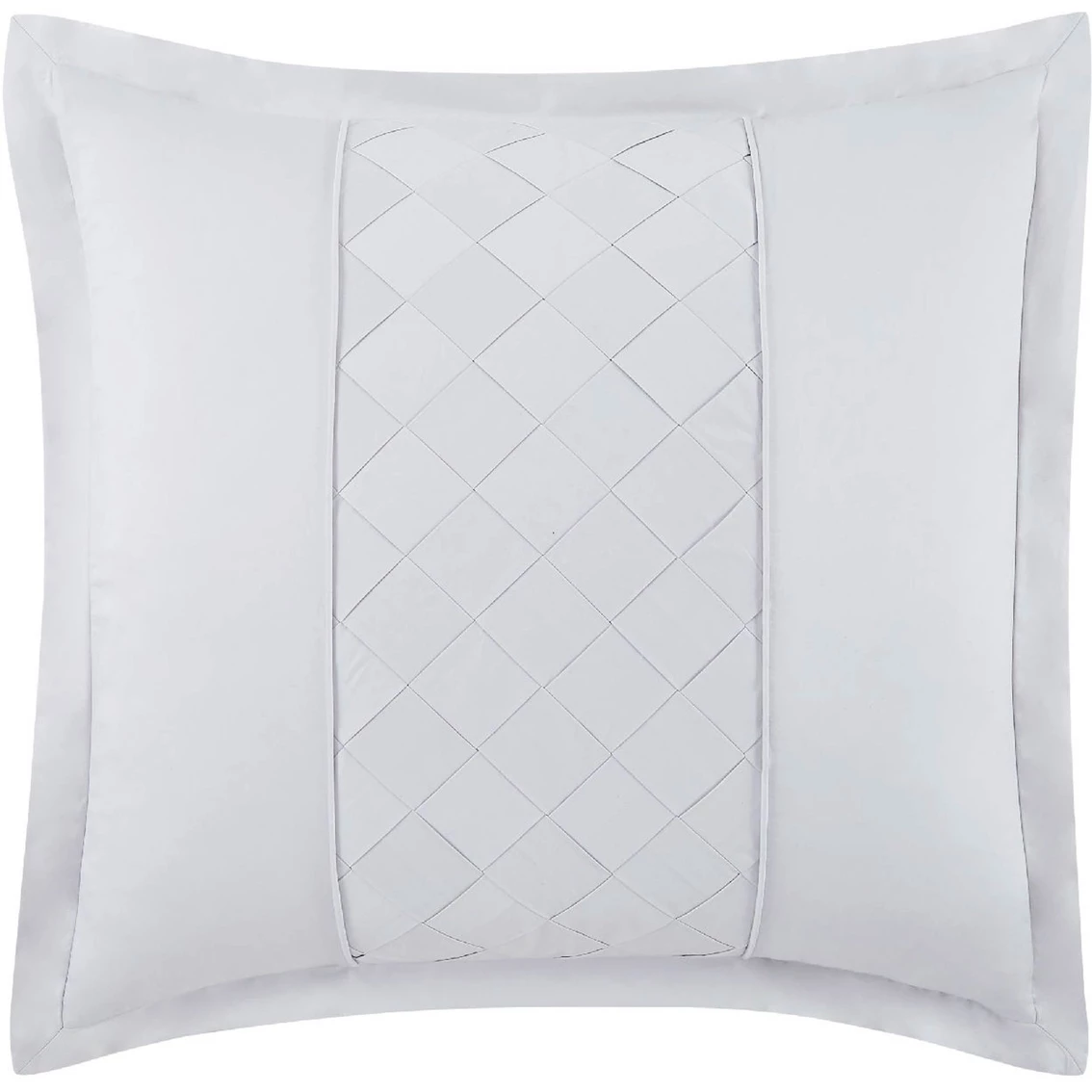 The Charisma Riva Embroidered European Sham coordinates with the top of the bed pattern with a light gray shade. The center of the sham features a pieced lattice portion that adds texture to the smooth 100% cotton sateen face fabric. Includes: one European sham 26 x 26 in. Face and back is 100% cotton sateen. This item is machine washable, but please be sure to use appropriate sized machinery to avoid any excess wear on the items. This item is manufactured and imported from China. Style: CF3020ES-1400.