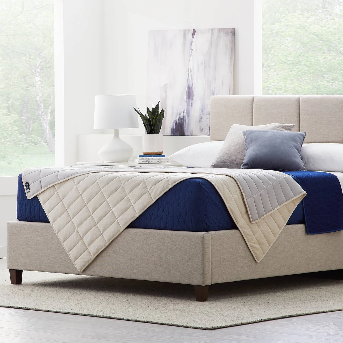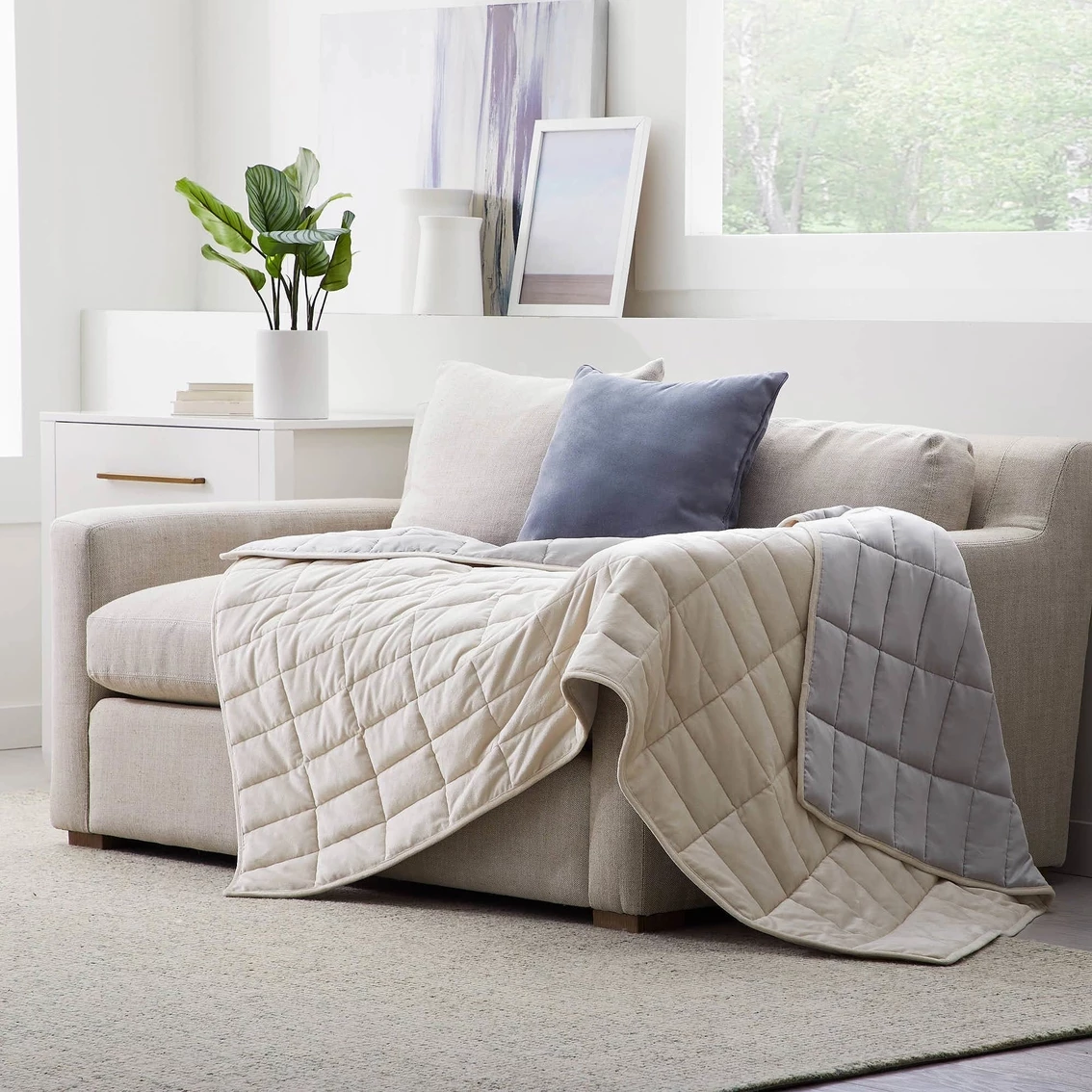 - Flip the weighted blanket over to snuggle into the warmer fleece fabric on those cooler days