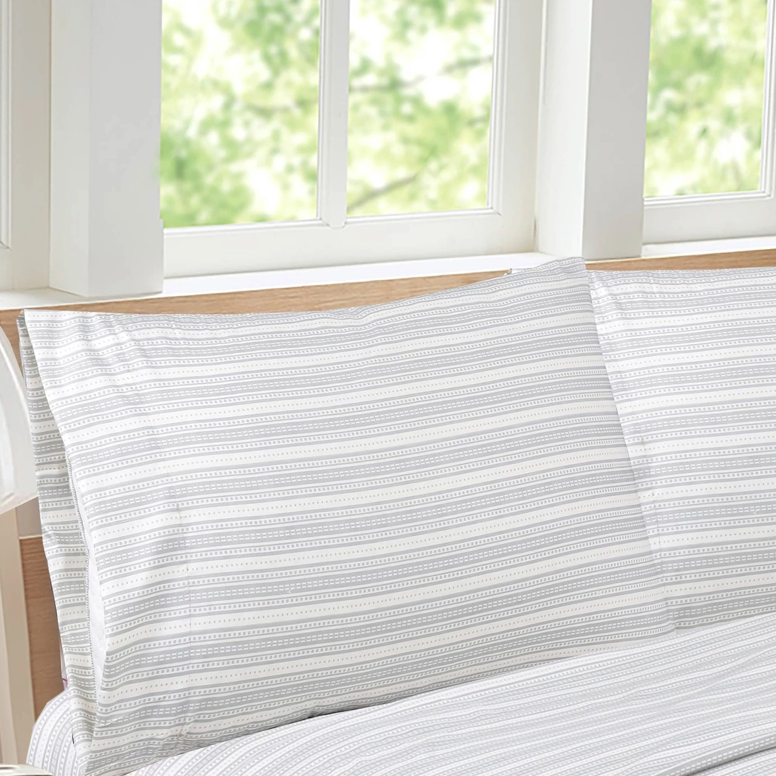 Upgrade your bedroom esthetic with this 2-piece Fairview Stripe Grey Pillowcase Set from Harper Lane. The printed motif will add life to any room. The set is printed on microfiber, and includes two pillowcases. Polyester microfiber, fade resistant. Each pillowcase measures 20 inches wide x 30 inches long. Machine washable for easy care. Style: 17210.