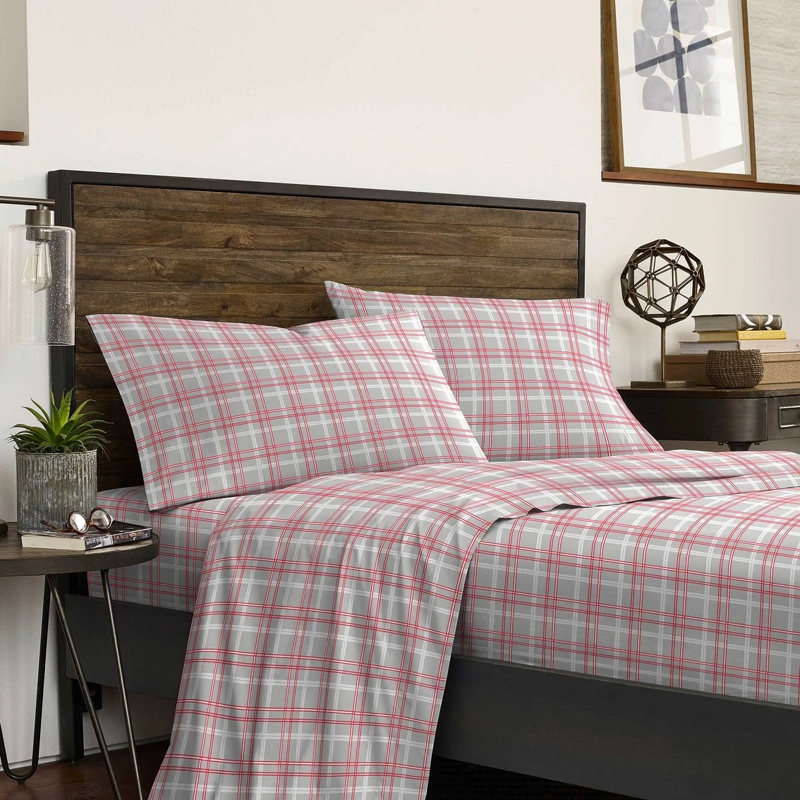 Fresh, modern checks adorn the IZOD David Plaid Sheet Set from quintessential all-American brand IZOD. Inspired by a weekend state of mind, the sheet set features a vibrant offset plaid print that mixes a trio of colors: Gray, Birch and Red. The pattern’s bold red lines are a vivid complement to a thicker, broken-line theme, a design that brightens up any bedroom with its eye-catching elements. The iconic IZOD bedding brand has infused the David Plaid Sheet Set with a touch of Americana and has crafted it for ease of care. Model: 1C37317.