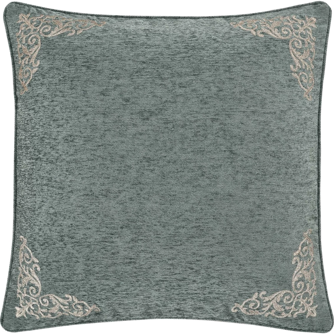 The J. Queen New York Dorset Euro Sham is beautiful accent to your bedding decor. Featuring a solid spa blue chenille with a metallic embroidery scroll design placed in each corner. The sham is finished with a .25-in. piping and hidden zipper closure. Pair this pillow sham with the Dorset Bedding set for a complete look. Model: 2632054EURO.