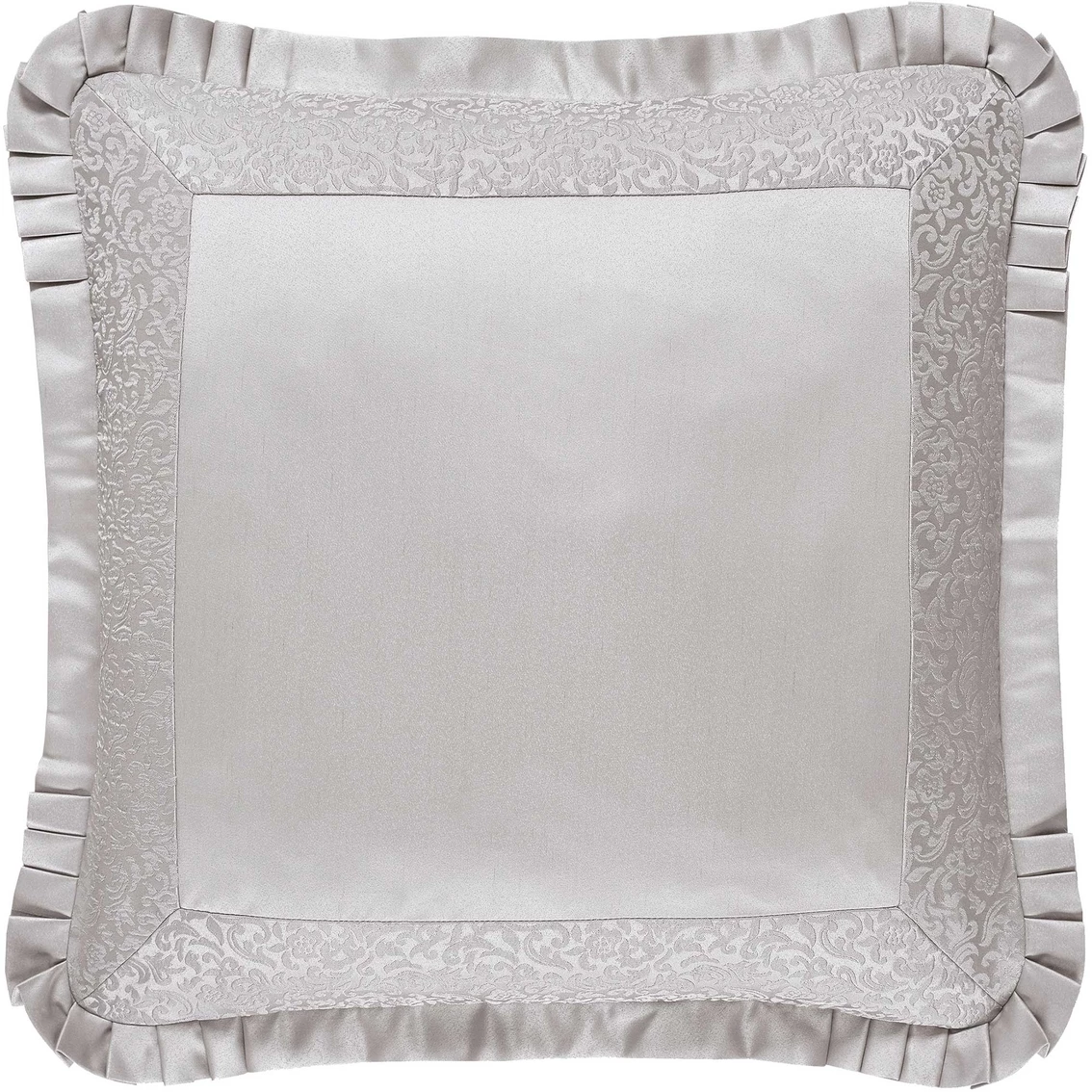 The J. Queen New York La Scala Euro Sham adds dimension and drama to the ensemble. An elegant satin fabric is framed with an intricate border and has a pleated satin flange adding a luxurious finish. The reverse of the sham is a smooth, soft fabric and is finished with a hidden zipper for comfort. Dry clean only.