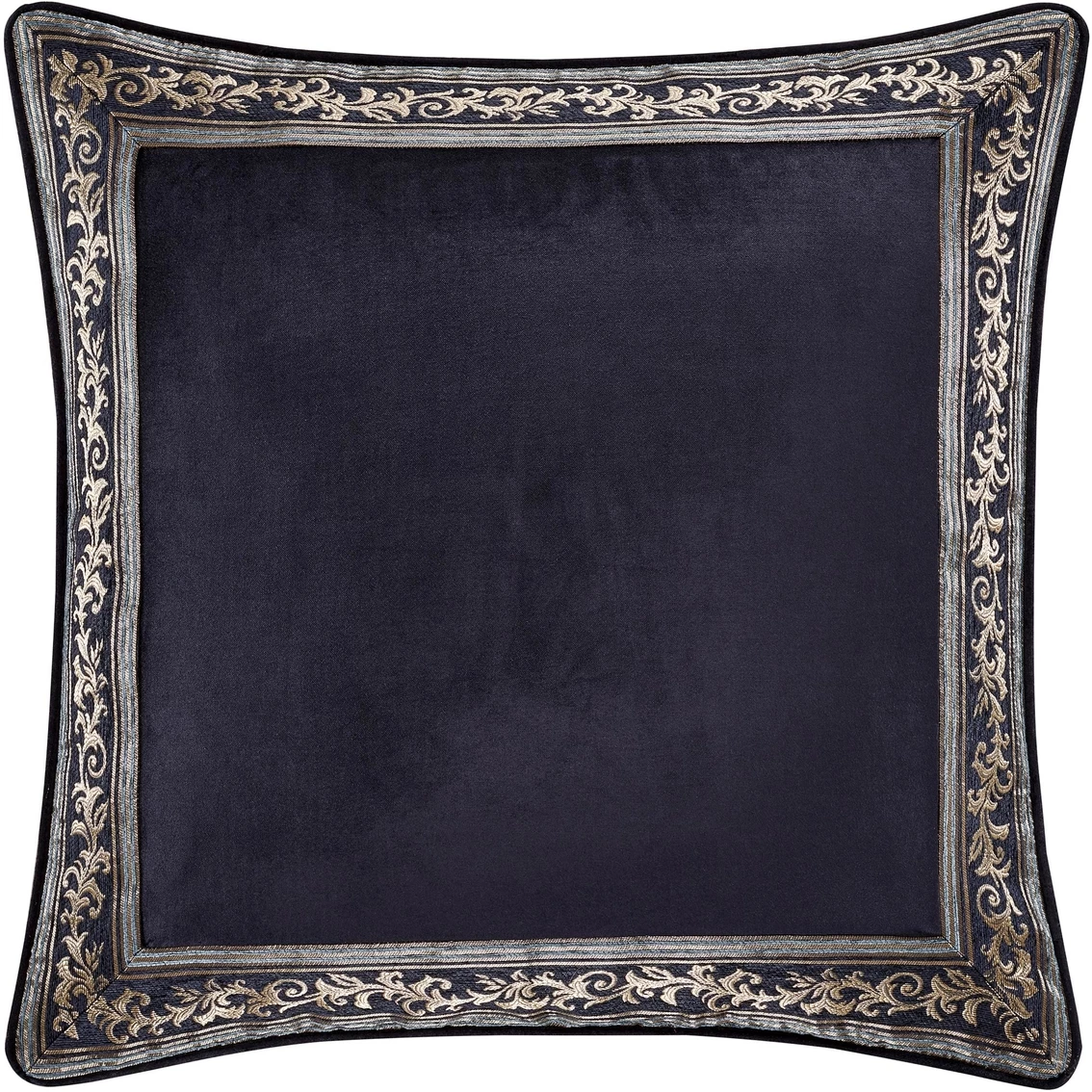 The J. Queen New York Middlebury Euro Sham is beautiful accent to your bedding decor. Featuring an indigo velvet in the center with a scroll stripe border that is mitered, framing the outer edge of the euro. The pillow sham reverses to vertical scroll stripe with .25-in. piping. Pair this pillow sham with the Middlebury Bedding set for a complete look. Model: 2644065EURO.