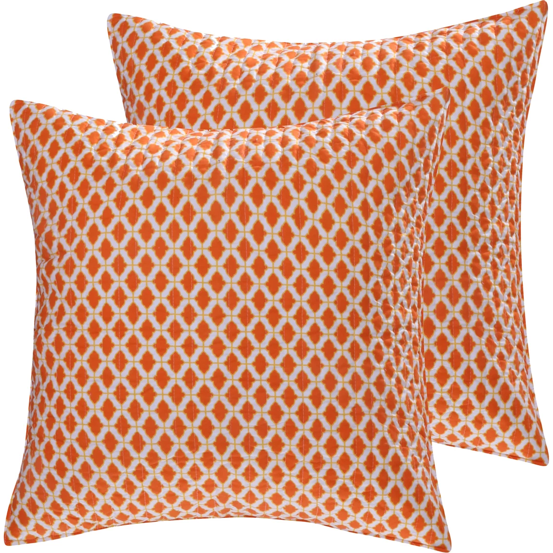 One of Levtex Home’s most popular sets, Mackenzie is inspired by bright bohemian colorful design. These euro shams feature a pattern of orange with white demask icons. A bound border provides contrast and texture to complete the look. Made from 100% cotton that will never ever feel heavy, stiff or uncomfortable, the Mackenzie euro sham set has an ultra soft feel that you’ll simply love. Their euros are sized (26 x 26 in.) to give you a feeling of comfort and luxury. They come as a set of 2 without a filler.