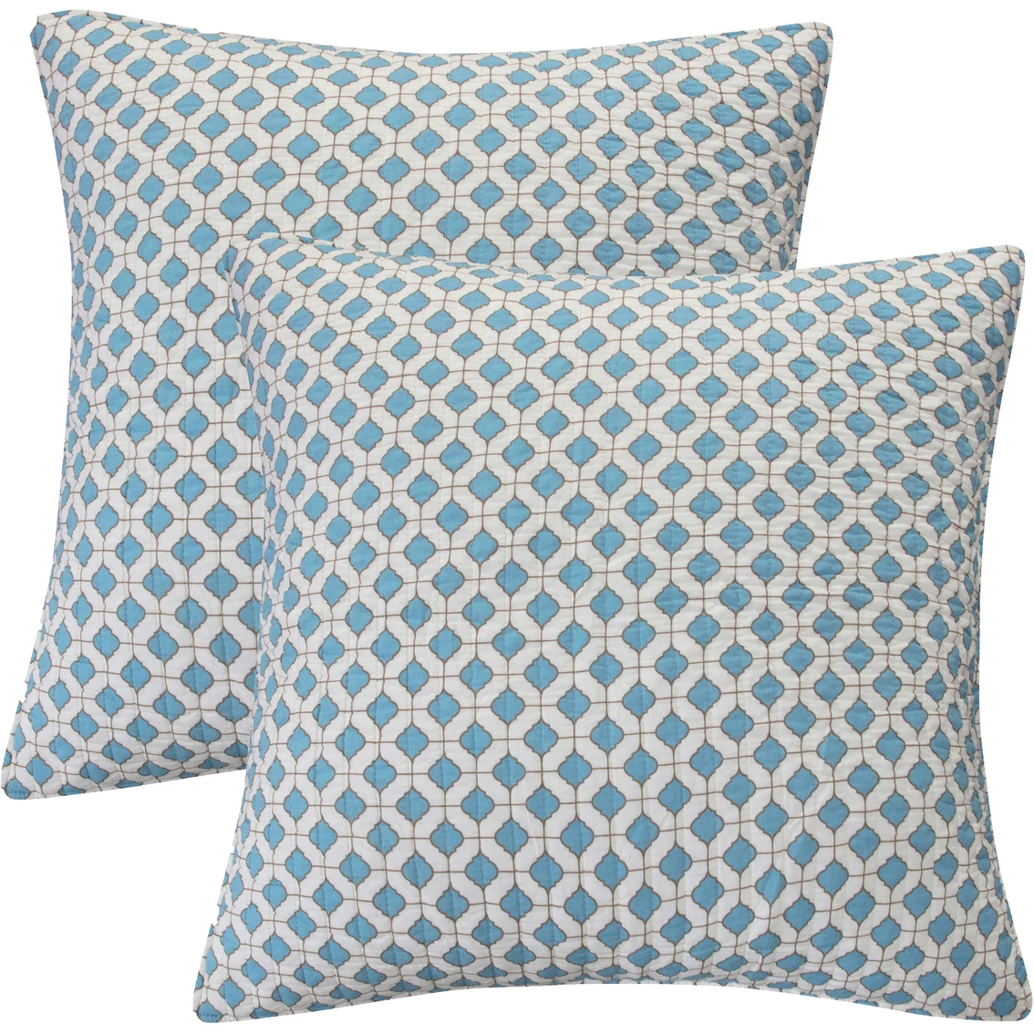 One of Levtex Home’s most popular sets, Grey Palladium is inspired by warm west coast fall. These euro shams feature a charming pattern of teal and white architectural tile design. A bound border provides contrast and texture to complete the look. Made from 100% cotton that will never ever feel heavy, stiff or uncomfortable, the Grey Palladium euro sham set has an ultra soft feel that you’ll simply love. Their euros are very generously sized (26 x 26 in.) to give your bedroom a feeling of comfort and luxury. They come as a set of 2 without a filler.