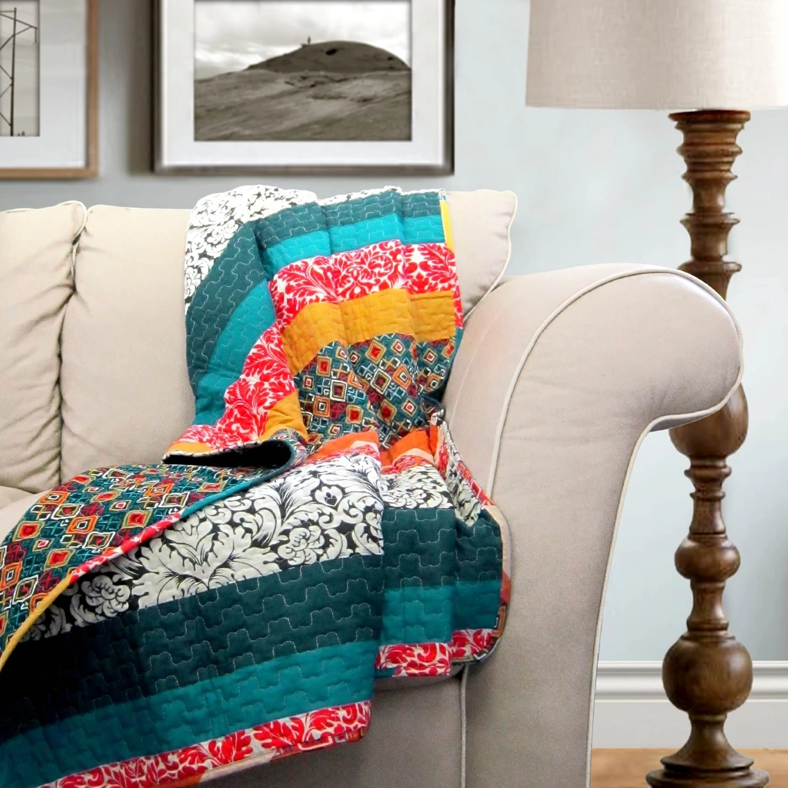 This free-spirited and untamed Boho Stripe Throw from Lush Decor is rustic and yet chic. Unique designs in bright and colorful floral and geometric patterns run across the quilt surface while the back side features a geometric pattern. The throw is soft to the hand and features wonderful quilting details.