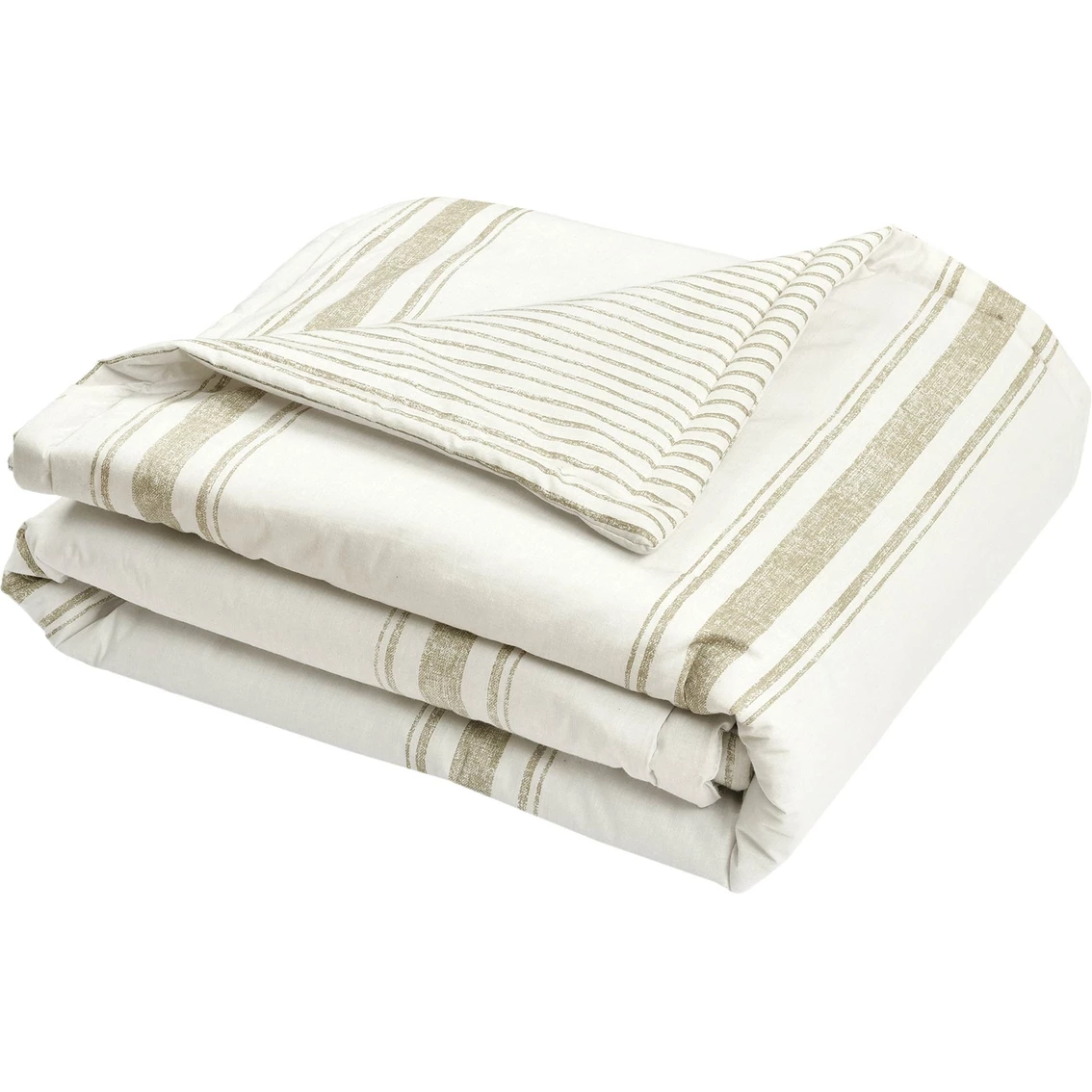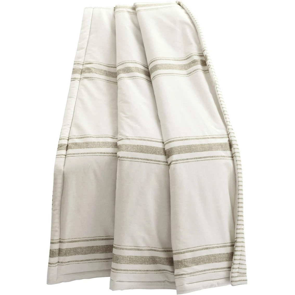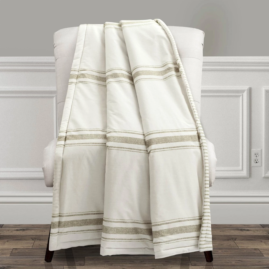 There is no easier way to add traditional farmhouse style to your home than with this reversible cotton Lush Decor Farmhouse Stripe Throw. The printing on the front is reminiscent of shiplap beams. The back features a pinstripe print. This throw would look great on a bed or sofa. Model: 16T005567.