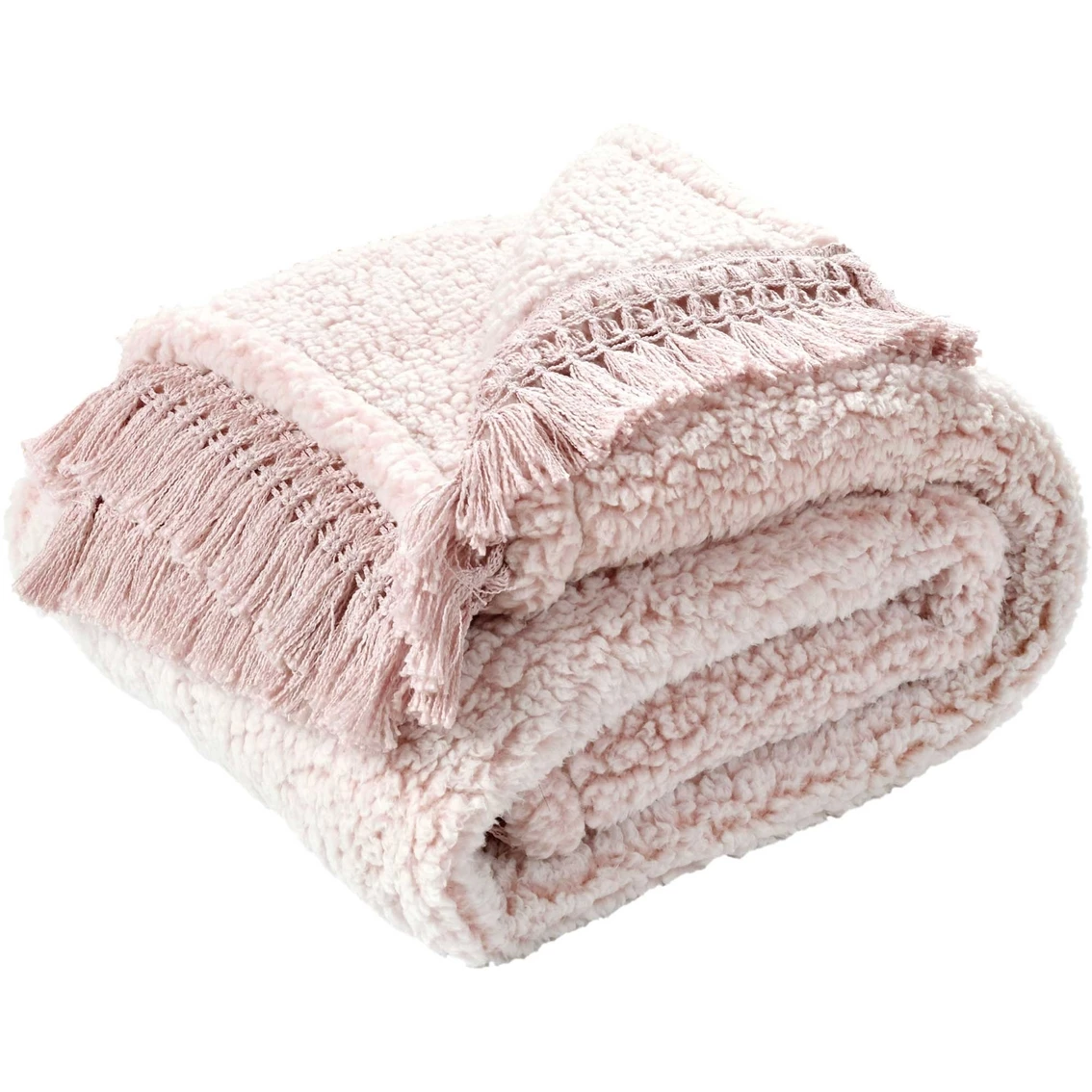 Add cozy comfort to your bedroom or living room with this soft sherpa throw blanket by Lush Decor. The solid color throw features a tassel fringe border on two sides. It perfectly suits a boho, hygge, minimalist, shabby chic, farmhouse or traditional design theme. Model: 16T008275.