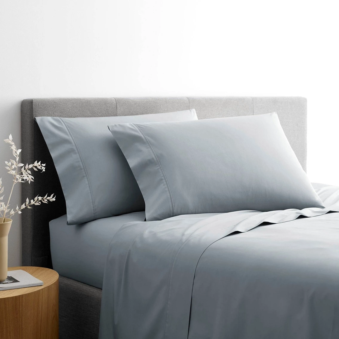 With SILVERbac Antimicrobial Technology, Martex Clean Essentials Solid Sheet Sets keep your bed fresher longer. They’re fabricated with silver-infused fibers that inhibit the growth of odor causing bacteria and do not wash out. These flat sheets, fitted sheets, and pillowcases feature a super-soft feel for a comfortable night’s sleep. Martex delivers every aspect of today’s happy home, through moments of love, wellness, and inspiration. Available in neutral shades like White and Sand, plus cool hues like light Blue and Gray, Martex Clean Essentials solid sheets and pillowcases complement any decor. Sheet set includes flat sheet, fitted sheet and pillowcase(s). Available in Twin, Twin XL, Full, Queen, and King sizes. Machine wash warm with similar colors. Only non-chlorine bleach when needed. Tumble dry medium, remove promptly. Warm iron as needed. Style: 1S44371.