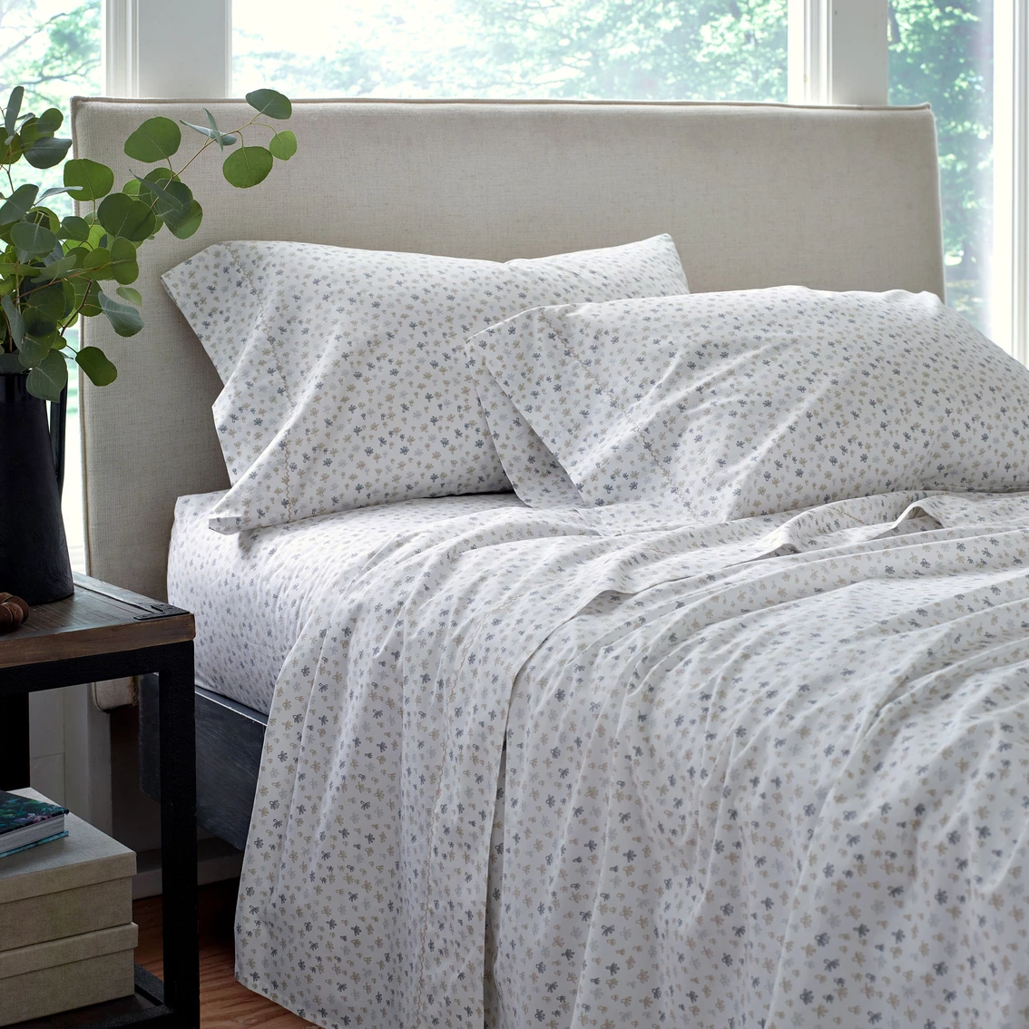 With the Martex Hableland Bounty Sheet Set, sisters and textile designers Susan and Katharine Hable apply their fresh, contemporary aesthetic to the heritage Martex brand. The trendsetting sisters’ timeless style offers eye-catching designs for those who do not shy away from bright, vibrant, fashion-forward colors and bold geometric patterns. The Martex Hableland Bounty Sheet Set offers a fresh harvest of botanicals, an array of micro-blooms sprinkled on a field of white. The set’s flat sheet, fitted sheet and pillowcase(s) are made of 100% cotton, so you’ll ease into a good night’s sleep in superior comfort and softness. The Martex Hableland Bounty Sheet Set is designed for ease of care; it’s machine washable and dryer safe. And, with its neutral and cool color palette, this sheet set pairs perfectly with the Martex Hableland Field Notes Comforter Set (sold separately). Twin and Twin XL sets come with a single standard pillowcase. Machine wash warm with similar colors. Only non-chlorine bleach when needed. Tumble dry medium, remove promptly. Warm iron as needed.