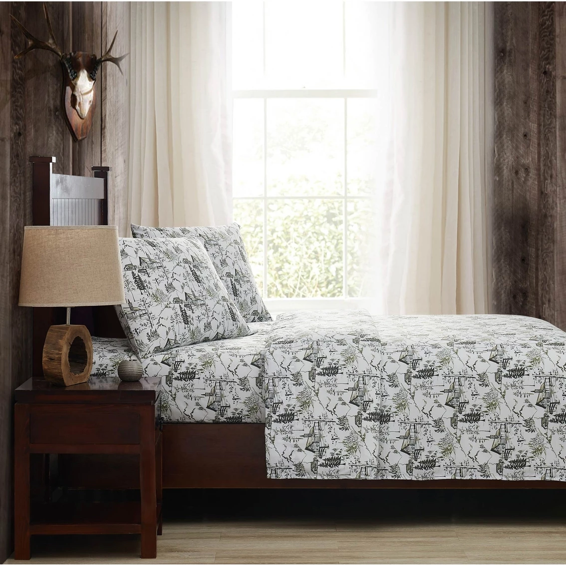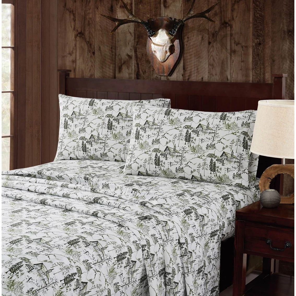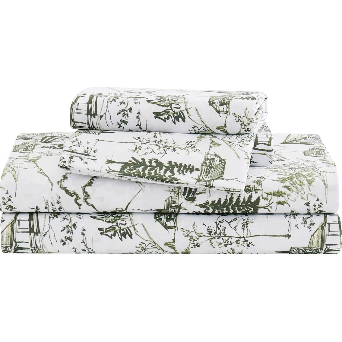Mossy Oak Nativ Living is for those who are drawn to the beauty of nature and whose passion for the outdoors inspires them to bring those elements into their home. Using textures, colors, elements and designs inspired by nature, Mossy Oak Nativ Living offers a variety of products to complement any cabin, home or lodge. These sheets feature a green-on-white festive print inspired by winter outdoors on specially garment washed fabric. Not only does the garment washing process make these sheets feel softer, it gives them a stylish, lived-in look. The microfiber fabric makes this set easy to clean and wrinkle resistant. Style: SS4387WIQN-4706.