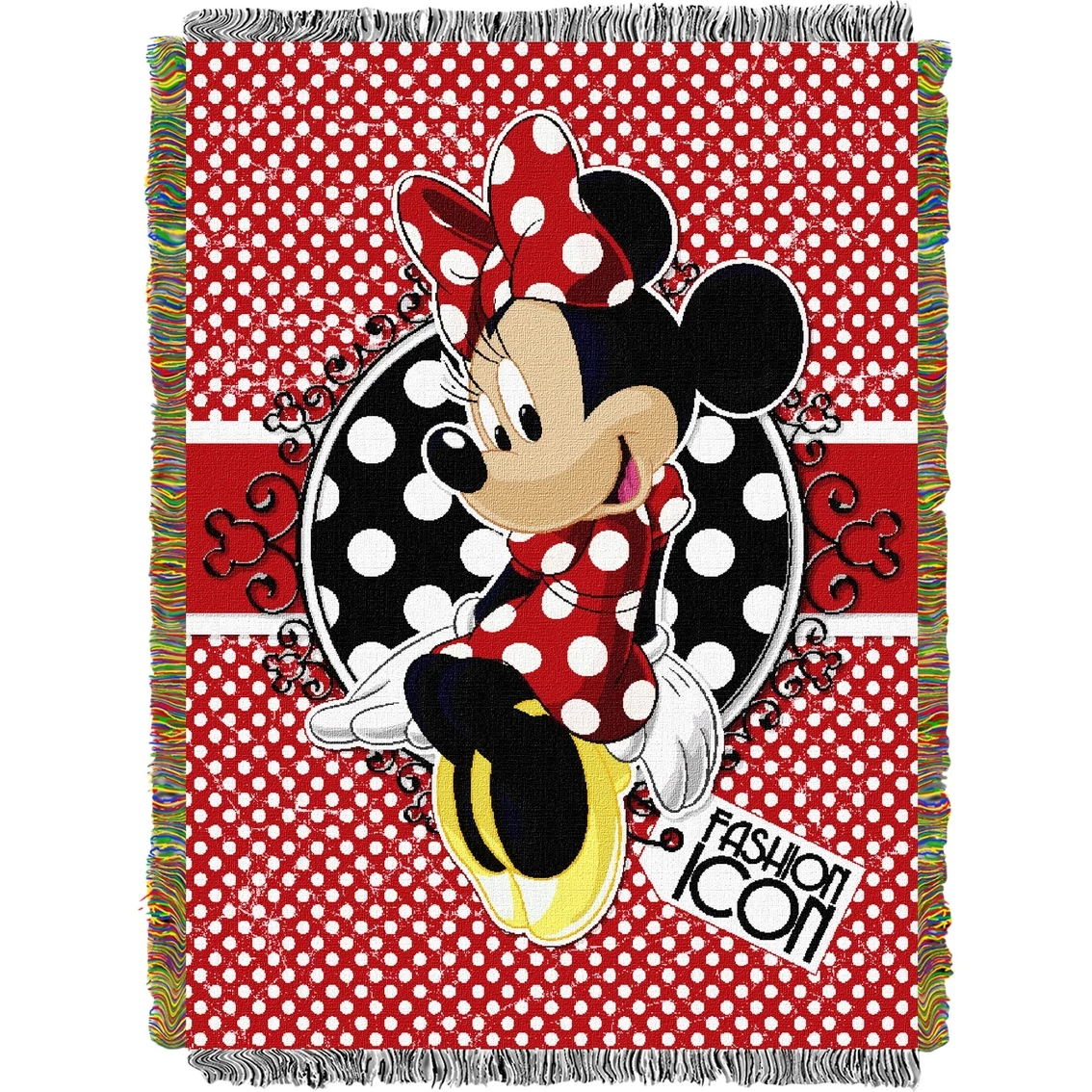 Perfect for keeping warm or displaying around the home, this 48 x 60 in. Woven Tapestry Throw from Northwest features Minnie Mouse in vivid color. This artistic throw is decorated with fringes on all sides and made in the U.S.A. of 100% polyester. Style: 1MIC/05100/0007/RET.