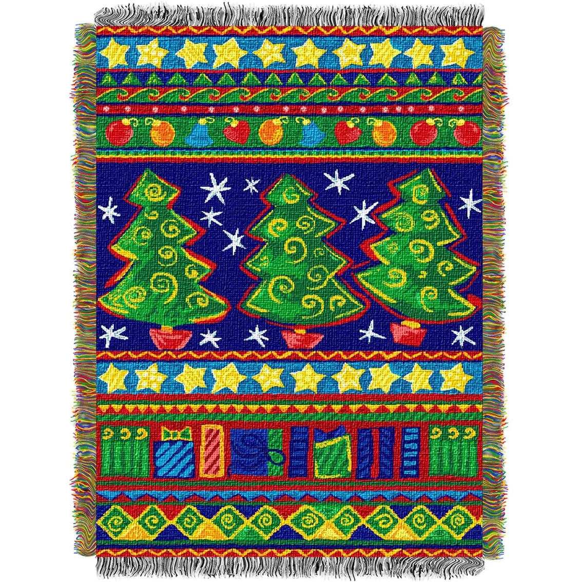 Featuring colorful holiday decor, this Woven Tapestry Throw from Northwest is perfect for keeping warm, displaying around the home as a decorative throw, or used as a wall hanging. This artistic 48 x 60 in. throw is decorated with fringes on all sides and made in the U.S.A. of 100% polyester. Style: 1GEN/05100/0041/RET.
