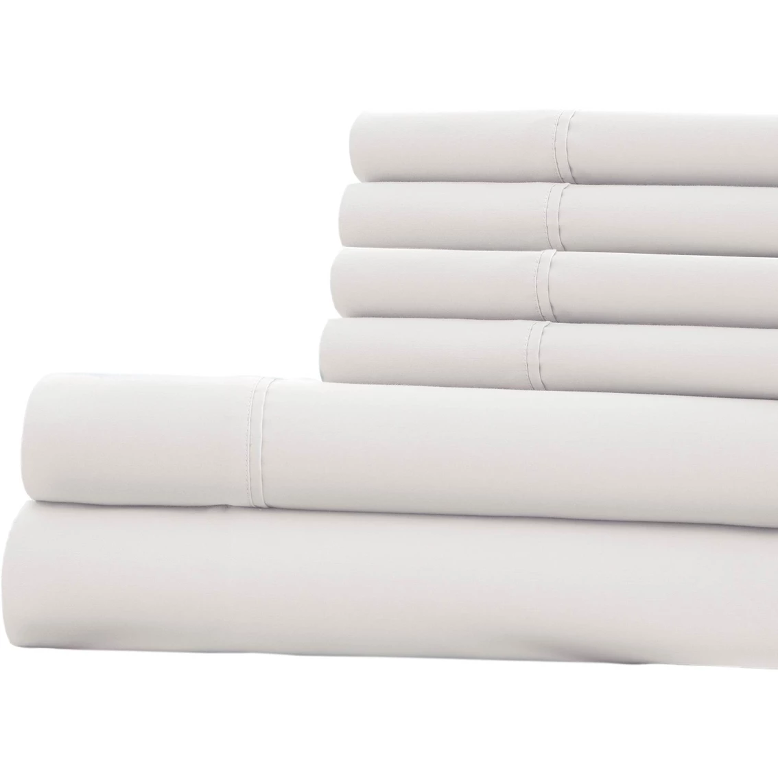 Flat sheet: 106 in. x 102 in., Fitted sheet: 72 in. x 84 in. with 15 in. pocket, 4 pillowcases: 20 in. x 40 in.