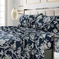 Best Sale ✔️ Tribeca Living Colmar Printed 300 TC Cotton Sateen Extra Deep Pocket Sheet Set ????