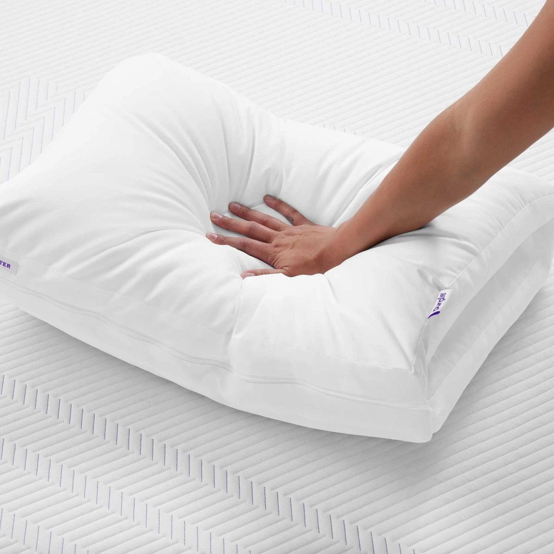 Purple has upgraded the cloud-like comfort of down by filling their Purple Cloud Pillow with hypoallergenic, ultra-fine gel fibers that won’t clump, trap heat or flatten over time. The result is plush cushioning that molds to support your head and neck. Want double the features and endless comfort possibilities?