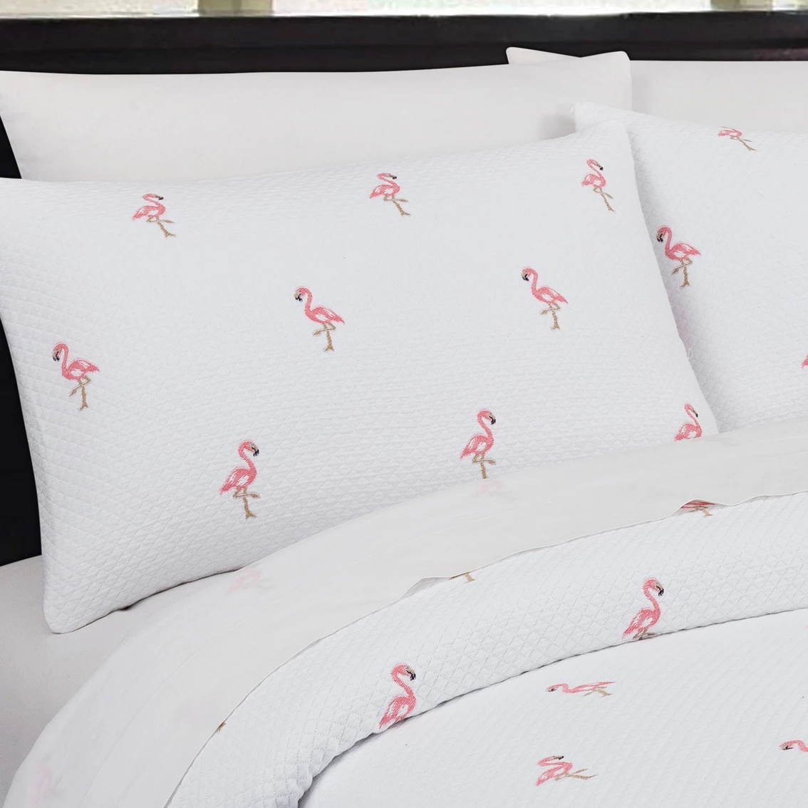 Paradise awaits from the comfort of your home with this Realeza Flamingo euro standard sham. The tropical inspired bedding is embroidered with pink flamingos to brighten up your bedroom. Perfect for your beach house or to bring the beach to you. Made of 100% cotton.