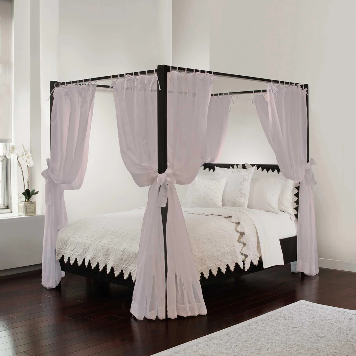 Update your existing canopy style bed with these dreamy panels. You are a few ties away from creating a romantic retreat in your own bedroom. You will sleep well and dream happy surrounded by this luxurious bed canopy set. All components are included in this set — 8 panels, 56 tie tops (7 per panel) and 8 tie backs. Installation only requires tying bows. You can install the canopy by tying each of the panels to the top of your canopy bed and securing the corners with tie backs. 8 Panels measure 45 in. wide x 96 in. long, and 56 Top Ties measure 0.5 in. wide x 36 in. long (use 7 ties per panel — assembly required). Model: 07A93F25-151-0050.