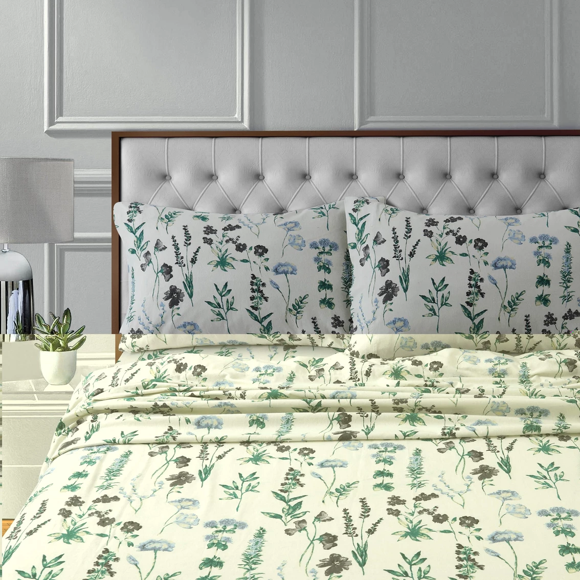 Add some holiday charm to your bedroom with this Tribeca Living Fleur flannel sheet set. Woven 170 gsm 100 percent cotton, these warm printed flannel sheets are offered in holiday and novelty printed patterns. Brushed on both sides for soft hand, this sheet set is designed to accommodate most pillowtop and extra deep mattresses with its wider flat sheet and fully-elasticized extra deep fitted sheet. Set includes one generously sized flat sheet, two pillowcases and fully elasticized fitted sheet that fits mattress up to 24-in deep. Machine washable. Style: FLEURSHEET.