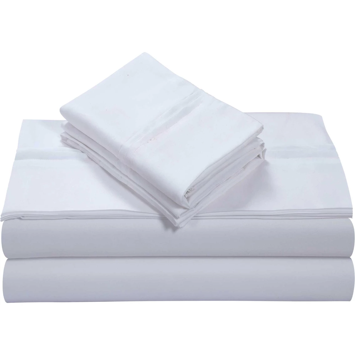 | Includes | One generously sized flat sheet (94-in x 106-in), two pillowcases (20-in x 30-in) and fully elasticized fitted sheet (60-in x 80-in) that fits mattress up to 21-in deep |