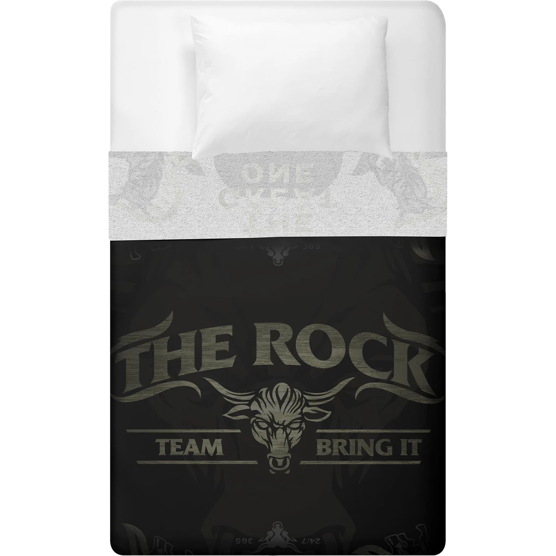 A main event WWE super soft throw. Sleep Squad jersey blankets feature a dynamic graphic design with authentic logos from WWE style guides. This WWE The Rock throw blanket is 60 x 80 inches, made with super-soft Rachel knit for a soft and luxurious feel and 100% polyester. Machine wash and dry. Officially licensed by the WWE. Great for chilling on the couch while watching WWE, picnics, camping, or just covering up while catching a nap. The size allows this throw to be used as a twin size bedspread. Makes a great gift for any fan. Style: T8-WWE-ROC.